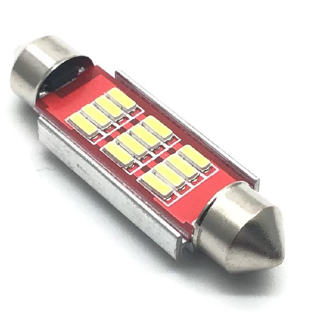 Tipo festón de 39mm con tecnología LED 5050, luz blanca brillante y uniforme, bajo consumo energético y larga vida útil, ideal para iluminación interior y de cortesía en vehículos.